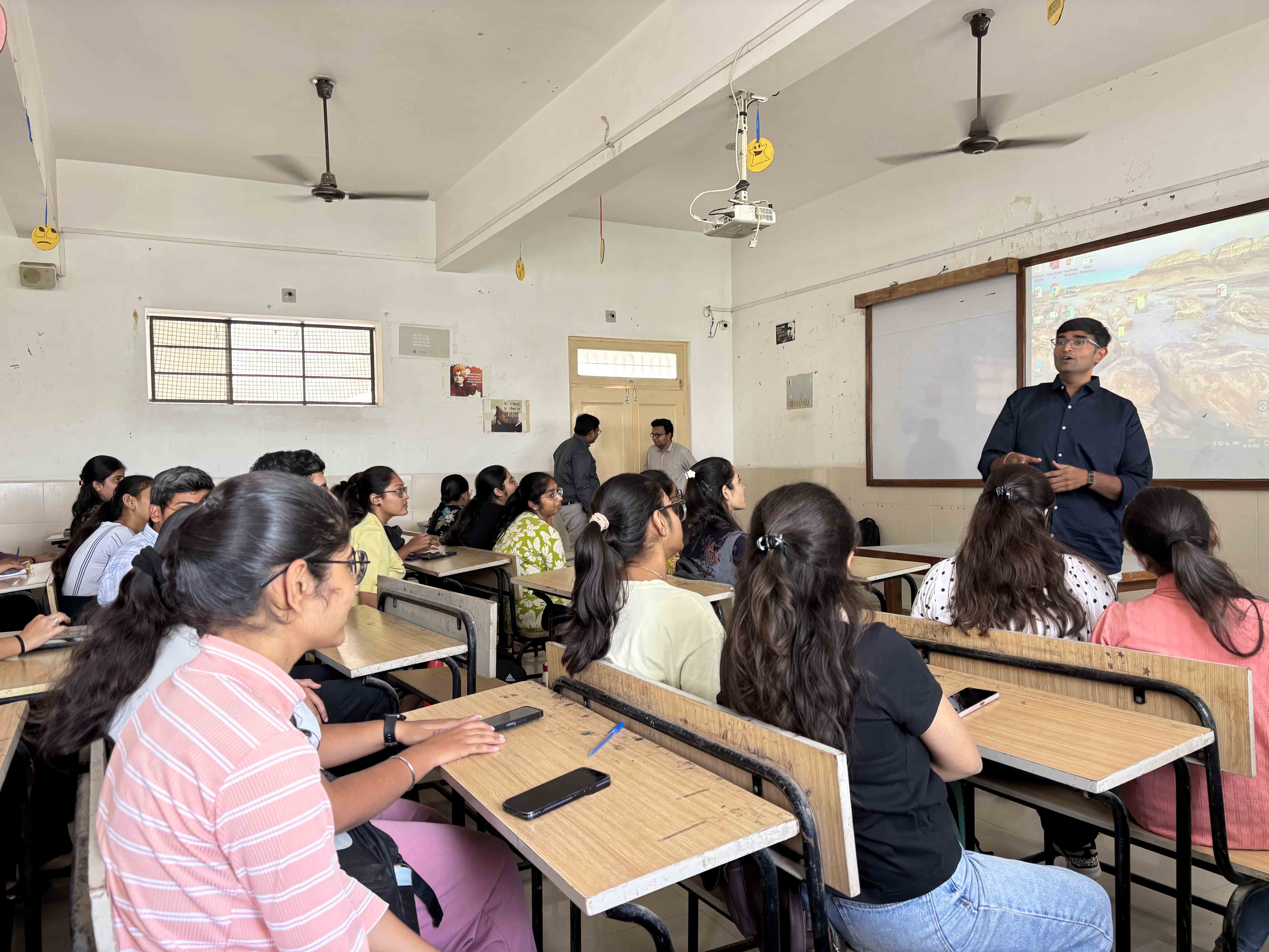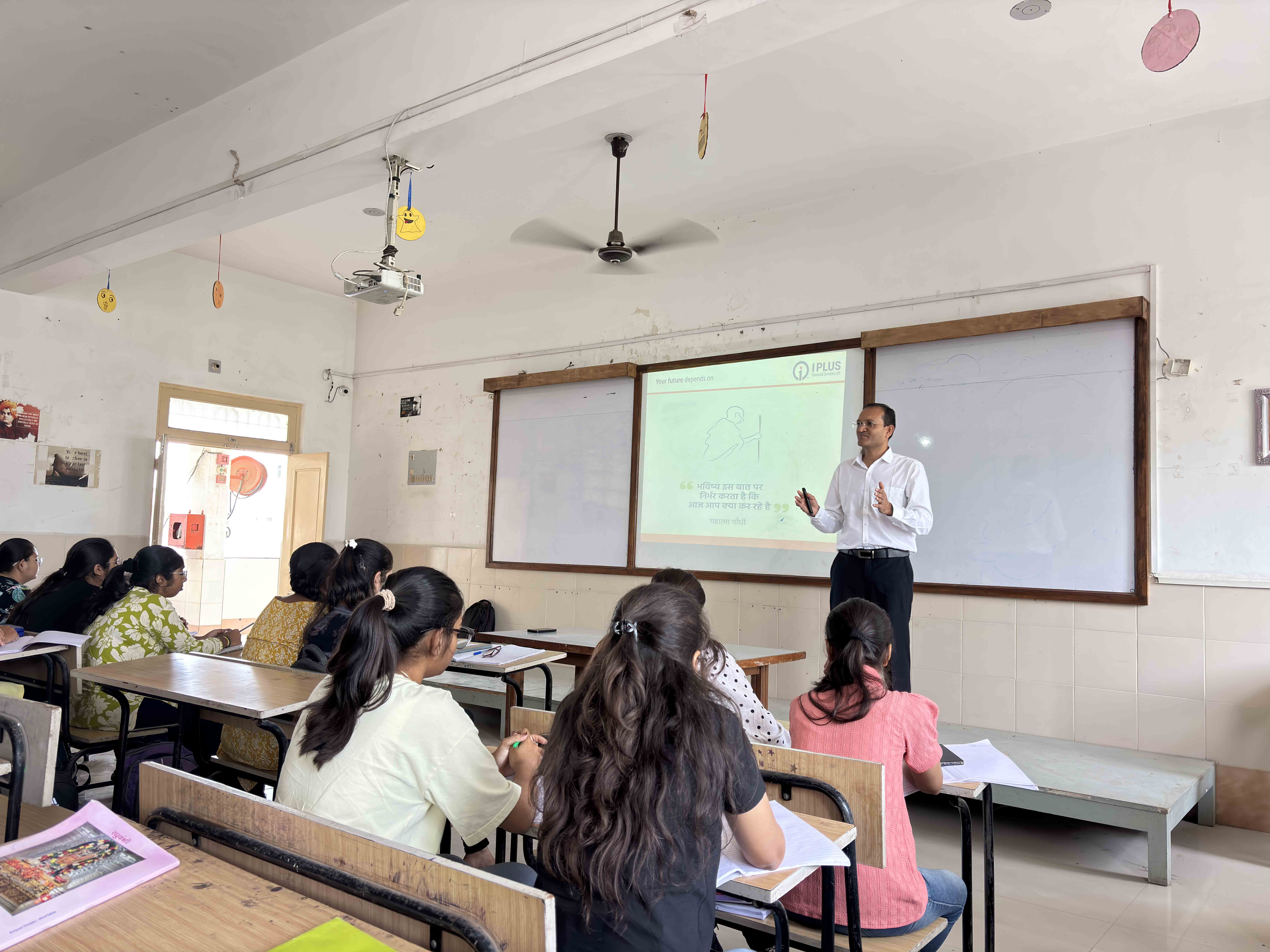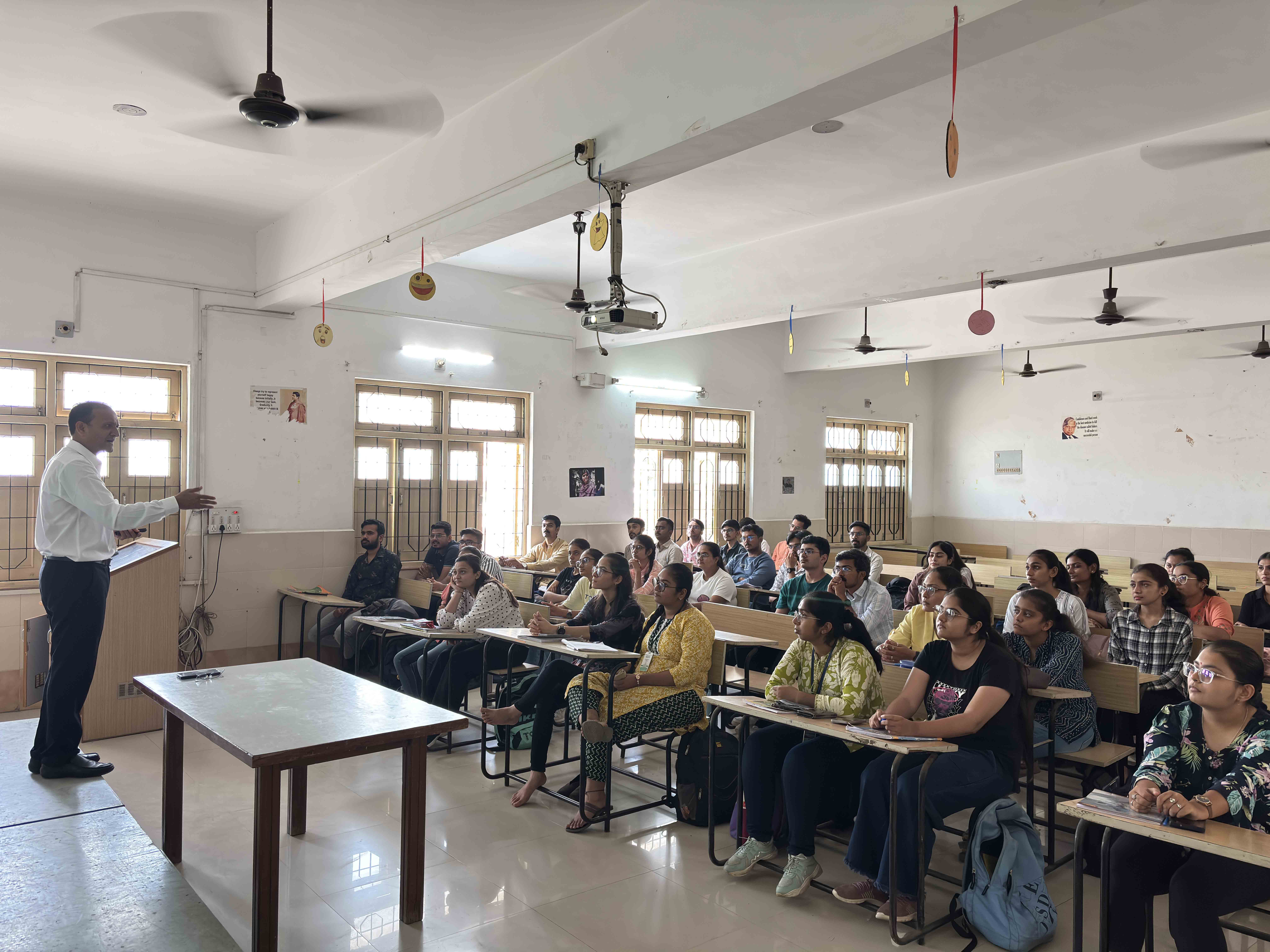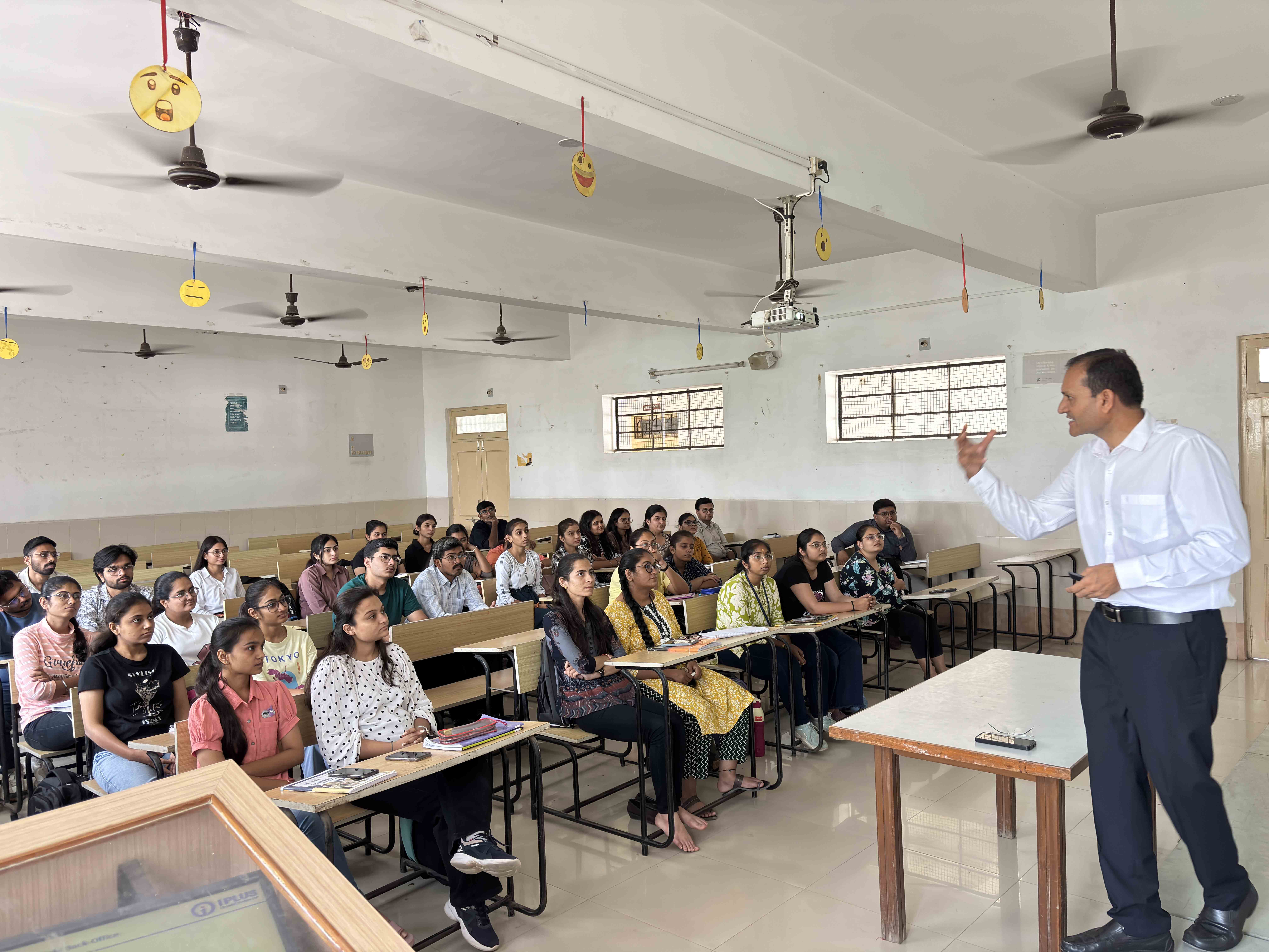 A special session by Mr. Ravi Kalaria focuses on current trends and fundamentals in finance. The session encourages analytical thinking and financial awareness among students while bridging classroom learning with practical industry insights.