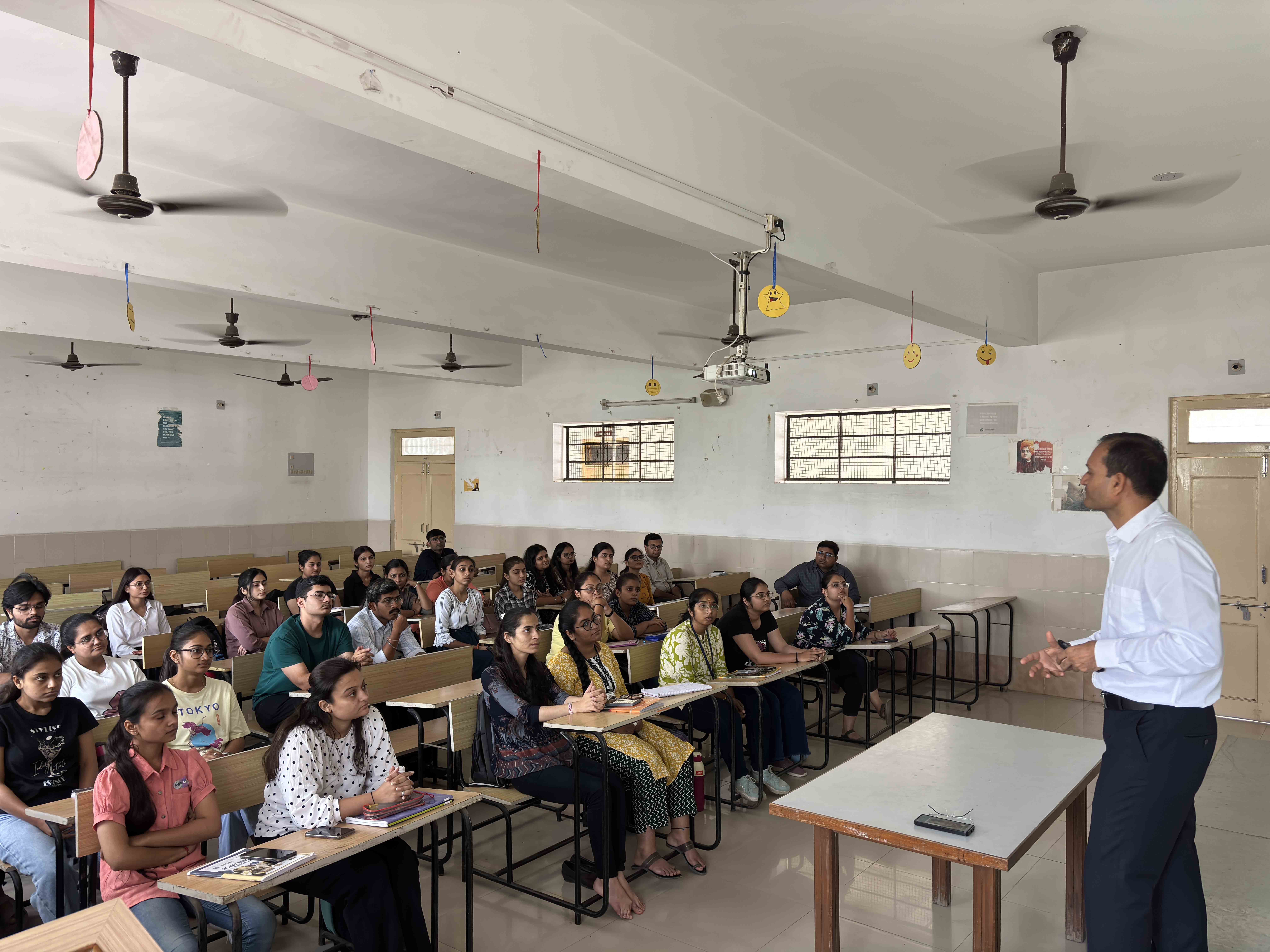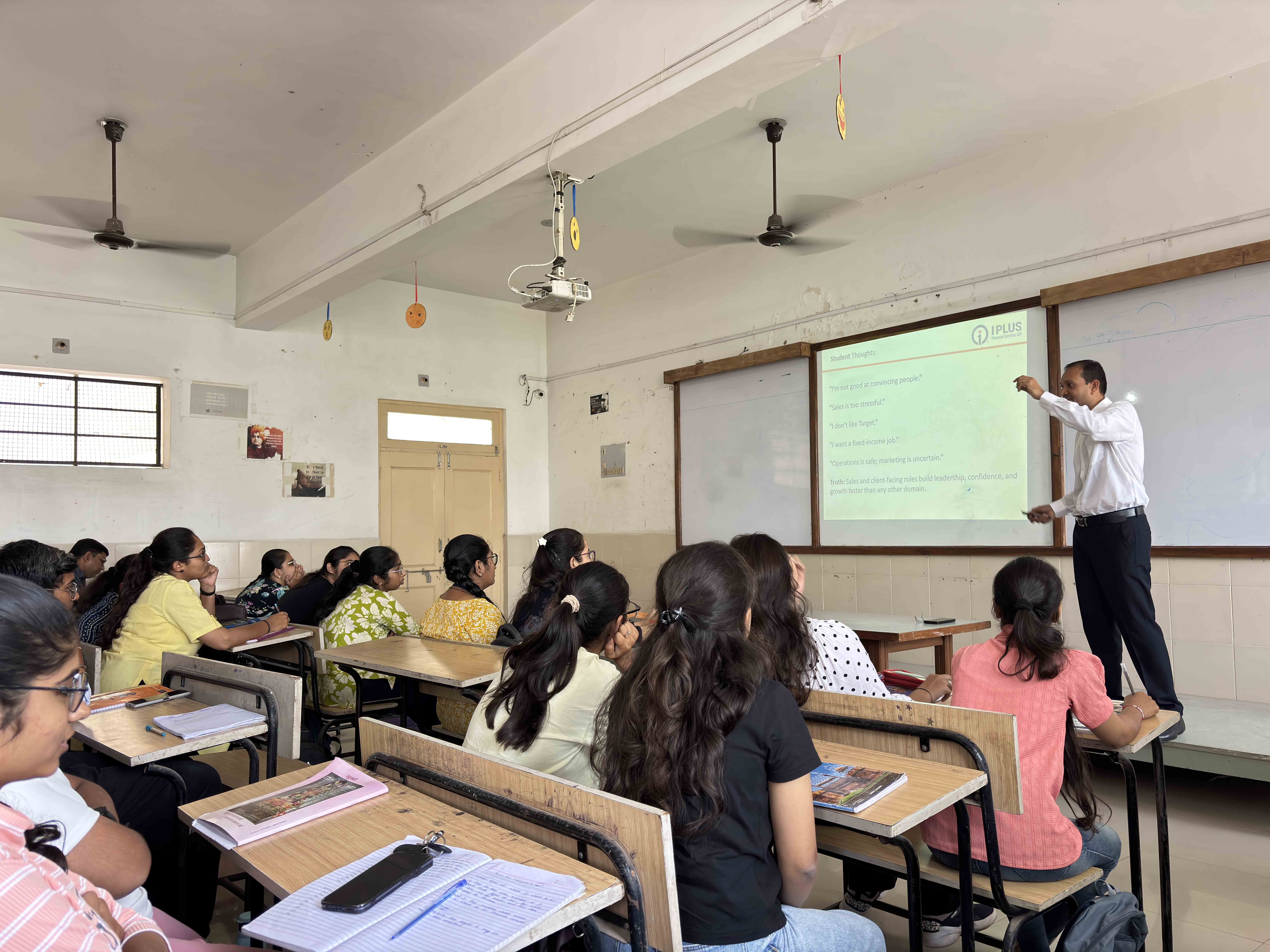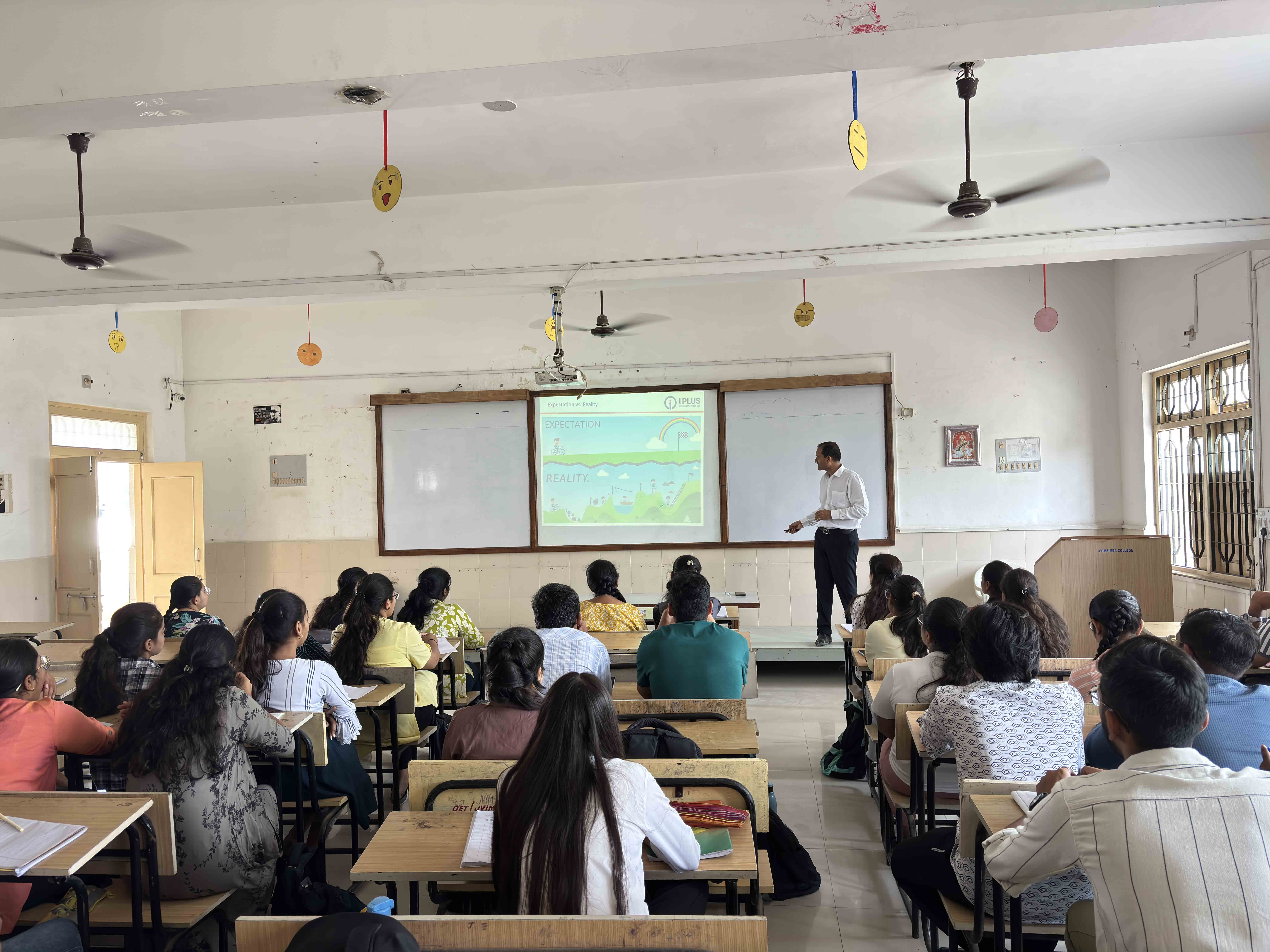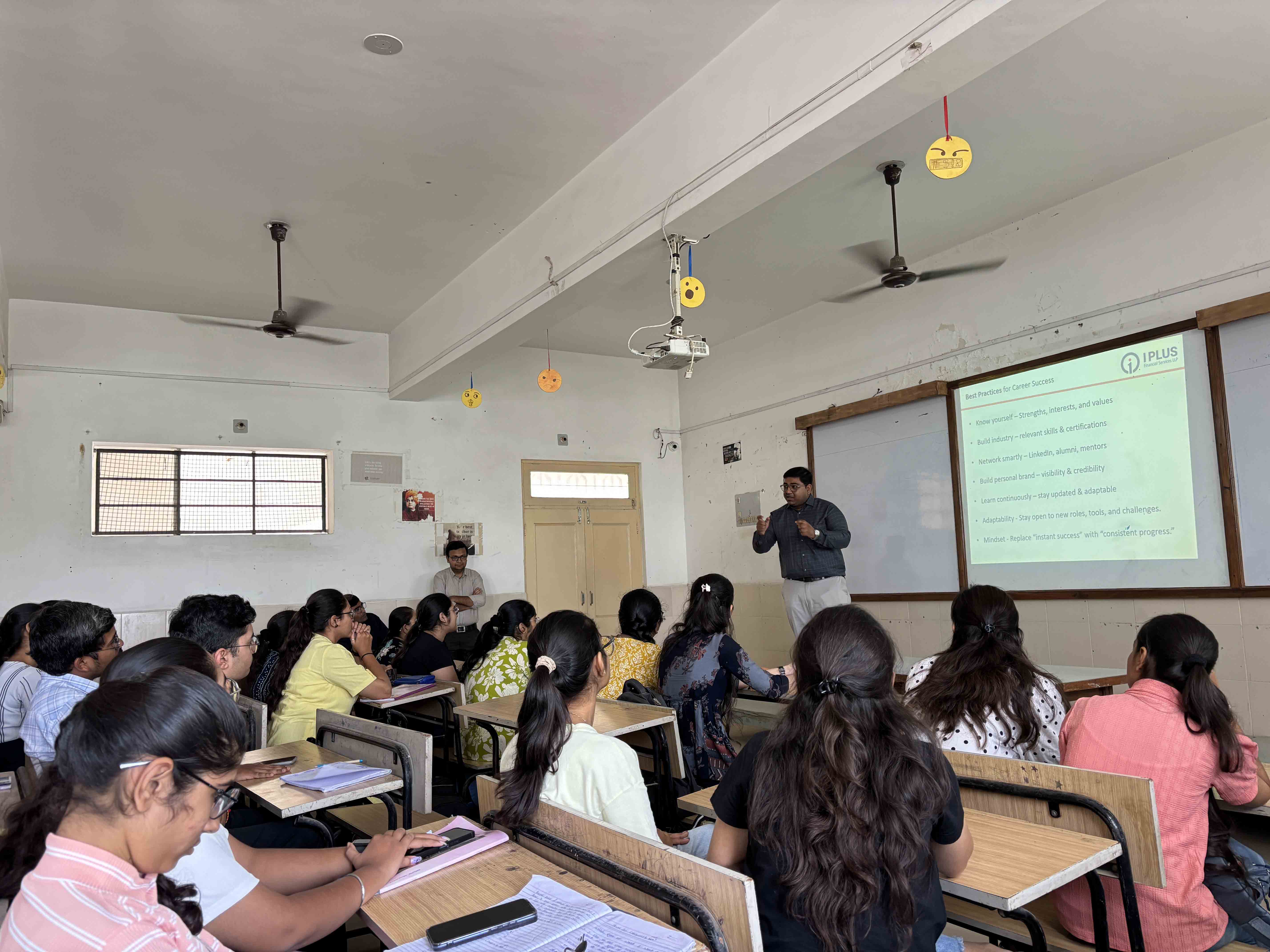 A special session by Mr. Ravi Kalaria focuses on current trends and fundamentals in finance. The session encourages analytical thinking and financial awareness among students while bridging classroom learning with practical industry insights.